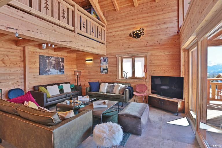 In Monêtier-les-Bains, the highest village of the valley, 5mn walk from the village center, south facing, the Chalets Cosy benefit from a panoramic and clear view on the Guisane valley, the ski slopes and the summits of Serre Chevalier. Space, comfort, warm atmosphere, for a very “cosy” break!