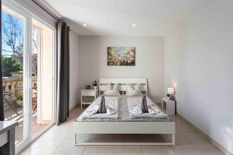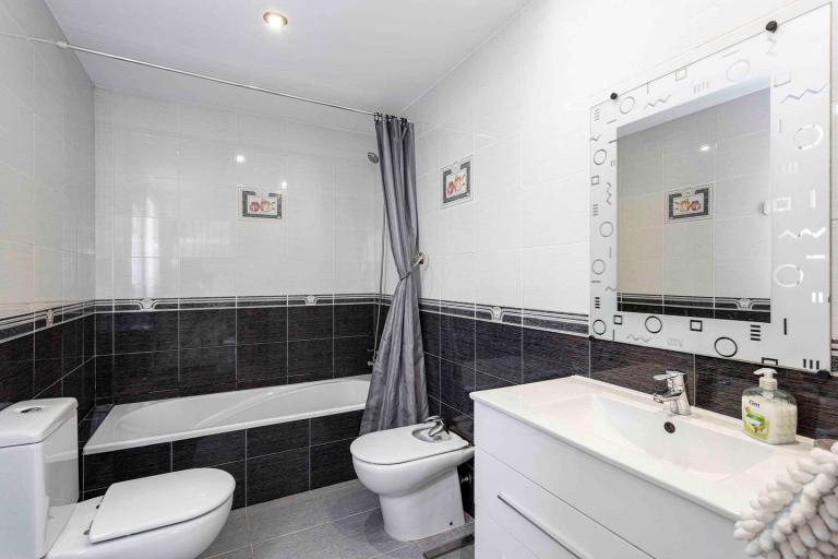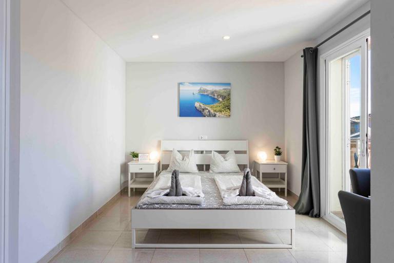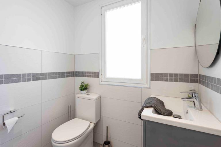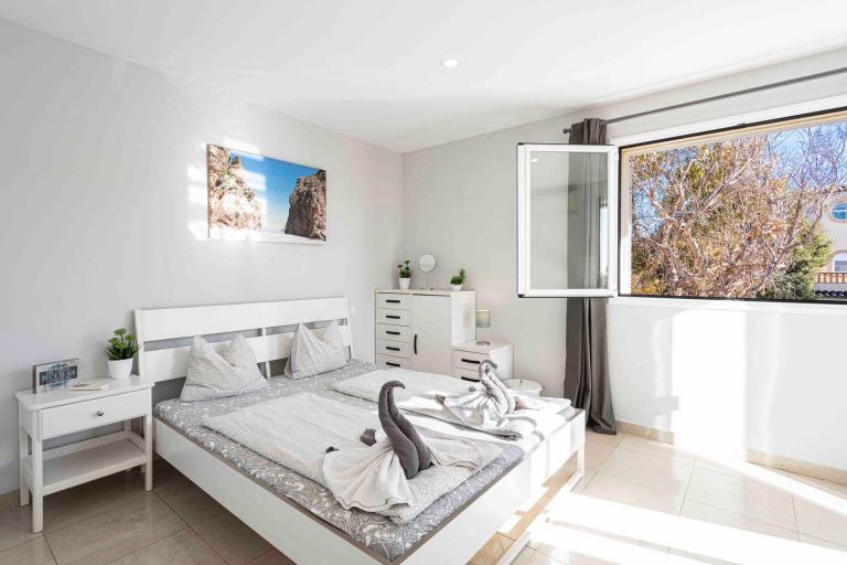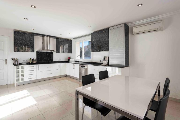 WITH 5 BEDROOMS, 3 BATHROOMS ONE ENSUITE, A FULL EQUIPPED KITCHEN AND A HUGE DINING ROOM WE ARE PREPARED FOR BIG GROUPS OR FAMILIES. 4 ROOMS HAVE DIRECT ACCESS TO BIG BALCONIES WITH POOL AND SEAVIEW. ENJOY AMAZING SUNSETS FROM OUR ROOFTOP TERRACE. IN THE GARDEN YOU FIND A BIG POOL WITH INTEGRATED WHIRLPOOL. ALTHOUGH WE PROVIDE SUNBEDS, OUTSIDE TABLES AND A BIG BARBECUE. CAPACITY UP TO 12 PEOPLE.
